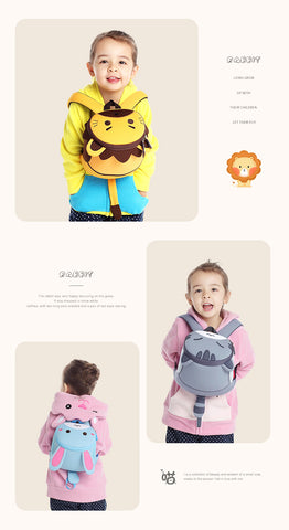 Children's Backpack with Lost String, Anti-lost, Lion, Cat, Rabbit, Stretchable, Yellow Blue Gray Pink